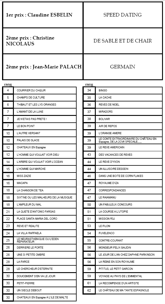 CONCOURS DE NOUVELLES 2011