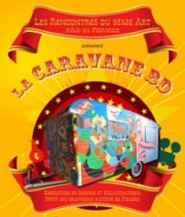 Caravane BD. Au départ ce sont de vraies caravanes de vacances achetées d’occasion à des particuliers sur petites annonces. A l’occasion de l’année Picasso, la caravane customisée par Captain Cavern, Muzo, Placid et Rosso s’arrête à Fuveau pendant le temps du Salon.